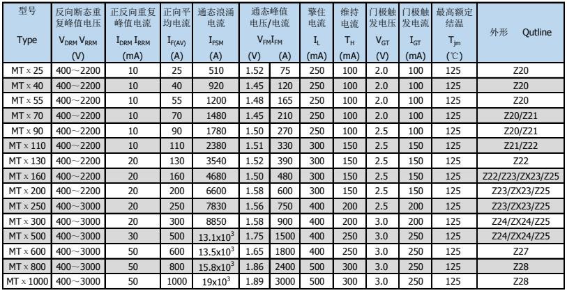 注:型號欄中MTχ表示MTC、MTK、MTA、MT中任一種。